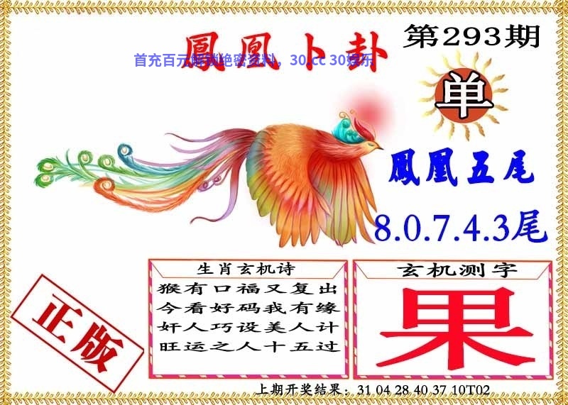 293期:玄机字【果】 玄机七肖:羊蛇牛鸡鼠猪龙 卜卦单双:单数 卜卦五尾:80743 |